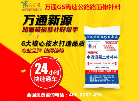 水泥混凝土修補(bǔ)專家----萬通新源中國專業(yè)水泥混凝土修補(bǔ)料材料供應(yīng)商!水泥混凝土修補(bǔ)料專門針對(duì)水泥混凝土路面的麻面、空鼓、起皮、脫殼、裂縫、漏筋等病害進(jìn)行及時(shí)修補(bǔ),直接涂抹在病害部位即可,有好的抗壓和粘接強(qiáng)度,可實(shí)現(xiàn)薄層修補(bǔ),在高速和高壓的行車狀態(tài)下不會(huì)出現(xiàn)破碎和脫落現(xiàn)象;凡是水泥混凝土表面病害均適用于本材料。